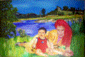 Wales) H24 x W24 inches 61cm x 61cm Dated 4-12-95 Price £300 $435 with integral frame Acrylic on hardboard During the trauma of her divorce, the press hounded Diana even more unmercifully than usual. This painting is derived from a photo in Hullo dated 19-8-95 and catches Diana in a sombre and angry mood. |