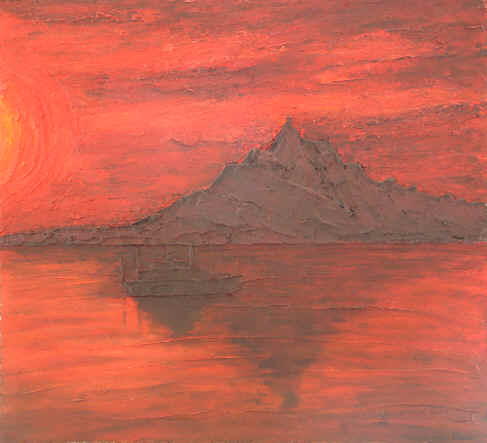 | 434... Sunset Over Loch Scavaig (Isle of Skye) Price £275 SOLD H37.5in x W41in (95cm x 104cm) Acrylics & tile adhesive on plywood 22-04-04 |