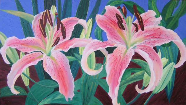 | 431... Lilium Stargazer Price £800 SOLD Inspired by Pamela Comerford H39.3in x W70.5in (100cm x 179cm) Acrylic paint on Plywood 26-03-04 |