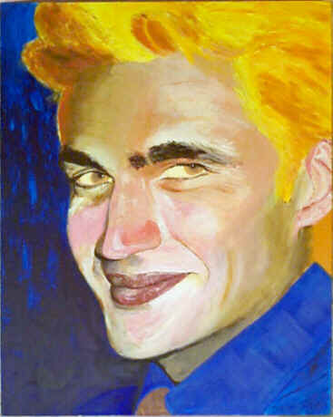 | Richard H38in W30in (H97cm W76cm) Dated 17-6-95 Price £200 $290 Acrylic on hardboard. Integral frame included From a Photo by Doug Lowe. I went through a phase of wanting to paint my whole family. Richard was next in turn. This picture is a bit of a problem for me. It has come out showing a very sensitive almost effeminate person. The brush sometimes produces unpredictable results. On the subject of painting family. When it came to painting my sister, I could not. After she died tragically following an operation, I wanted to honour her memory. It merely opened up the wound again and made me ill. I had to give up on that idea. And then there is my mother and my mother in law. I can't bring myself to paint them either. I cannot explain why as both are in good health both mentally and physically. Perhaps it is because in painting them I have to delve deep into their personalities and because of their ages and seniority, I am constrained from doing so. |