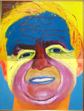 Self Portrait. H48in W36in (H122cm W91cm) Dated 5-4-95 Price £36, $50 Shipping from U.K. Studio extra. Unframed Acrylic on plywood Photo probably by Margaret. It is not a favourite of mine so you can have it for $100. I will do another portrait later (much later, if ever). |